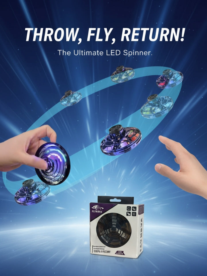 Catch the Fun!Experience endless excitement with the LED Flying Spinner Toy – the interactive gadget that defies gravity and always finds its way back to your hand.